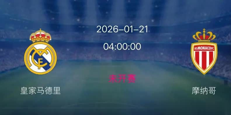 欧冠联赛阶段第7轮的焦点战将于北京时间2026年1月21日04:00在圣地亚哥·伯纳乌球场打响。皇家马德里坐镇主场迎战摩纳哥。这是一场典型的“残阵对决”,两队均受到严重伤病困扰,但求胜欲望同样强烈。